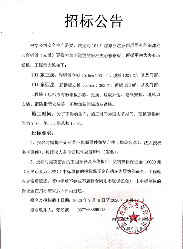 101廠房東三 四層彩鋼板招標公告