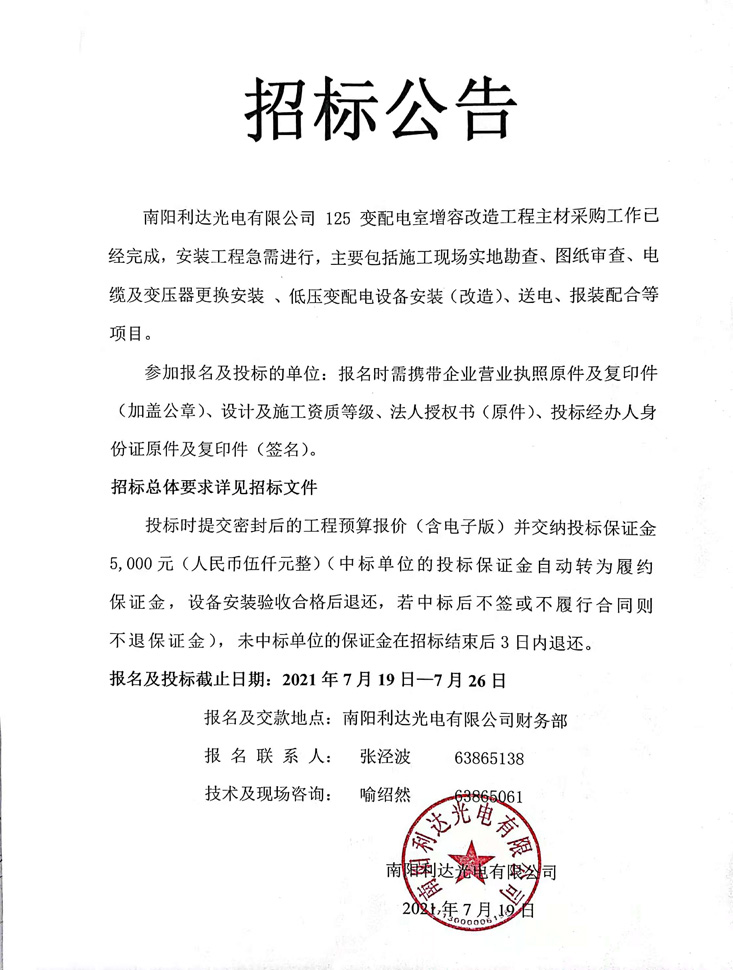 - (2025-07-17)利達光電公開招聘財務部部長擬錄用人員公示